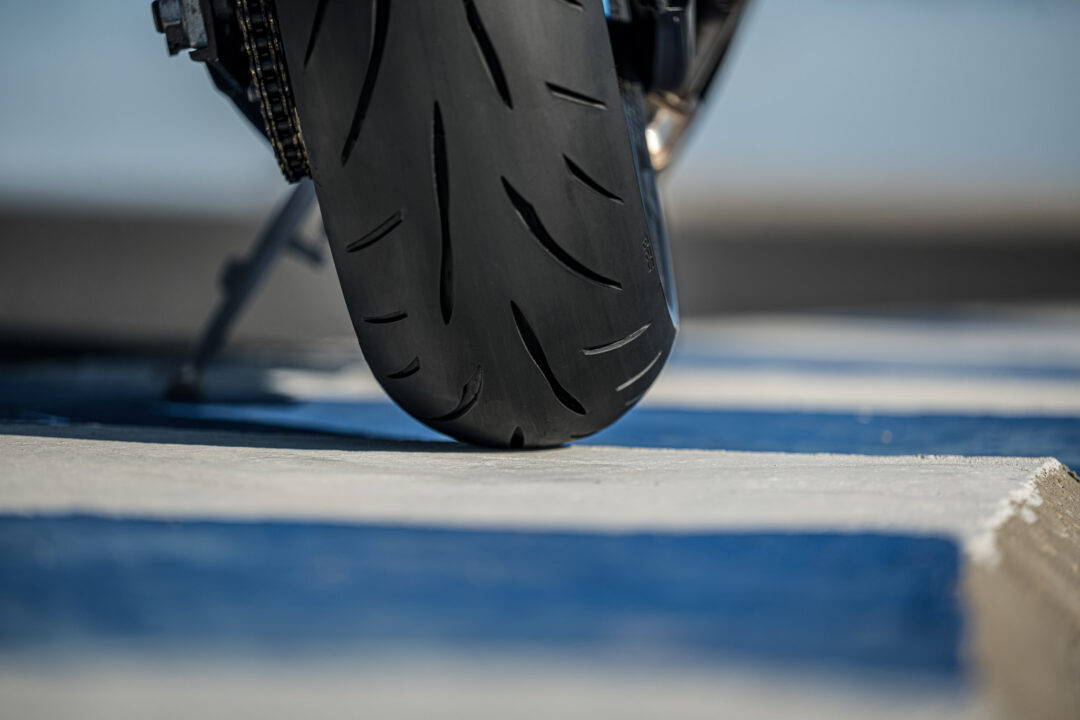In testing at the demanding Autopolis racetrack in Japan, Bridgestone says the corner speed of a test Yamaha YZF-R1 increased by 5% over the S22, which resulted in a 2.4% faster lap time. Furthermore, in the wet, there’s now a 3% shorter braking distance and a 4% faster wet lap time.