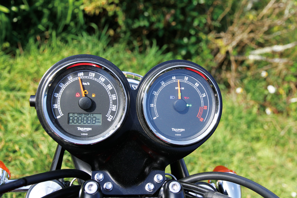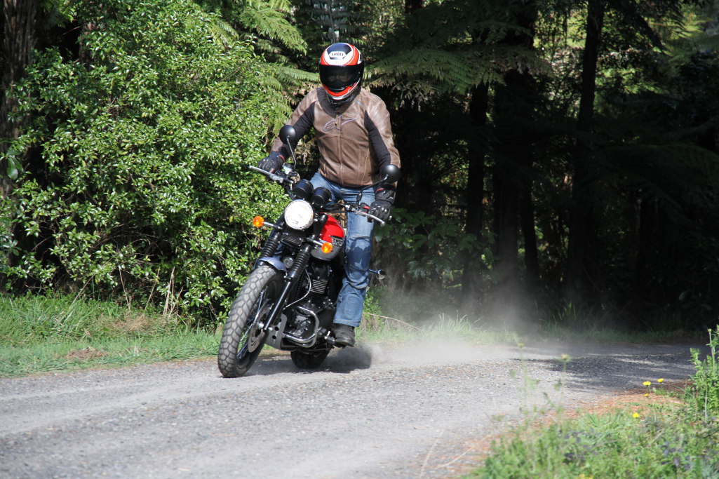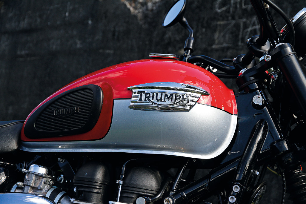 What makes it different from the T100-based T214 we had in BRM a couple of months back? Sound and attitude; and that’s enough for people to covet one over the other. The taller seat height is as much to do with thicker foam as the small increase in suspension movement from a regular Bonnie but that does give it a suppler ride. For traversing the metropolis (maybe not Paeroa as it’d be over too soon) the Scrambler is ideal with its broad spread of torque helping the barely sixty horses propel you in comfort and undeniable style. The reconfigured engine makes its maximum torque and slightly reduced maximum power lower down the rev-range than the ‘road bike’ versions, so possibly even more tractable in town. If you need serious speed to feel cool, you won’t gel with the Scrambler – but the Scrambler is undeniably cool in its own way anyhow.