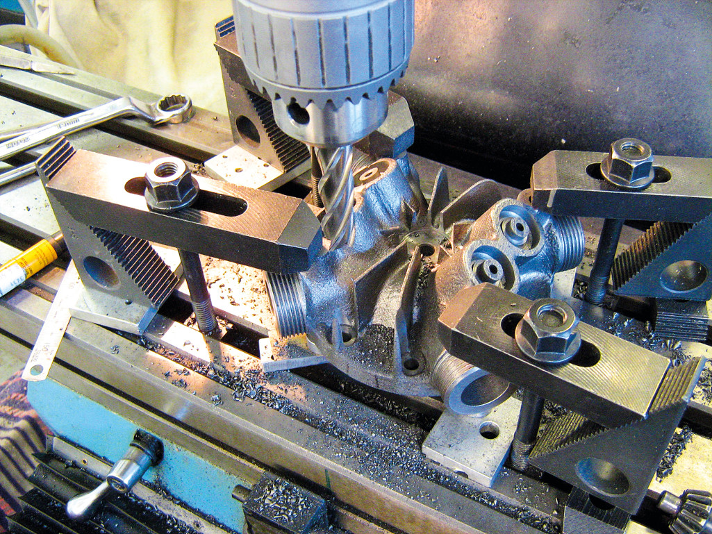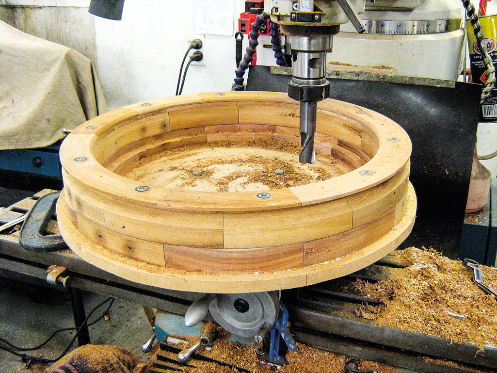 At this time, the wooden pattern for the cylinder head and flywheels were completed, and Chris had blanks of these parts cast in iron at Cancast in Washdyke. Making the wooden pattern for the sand-casting was particularly tricky, due to the number of undercuts needed, and this prevented the head from being extracted easily from the mould, but by making the core in several pieces, the result was a success.
