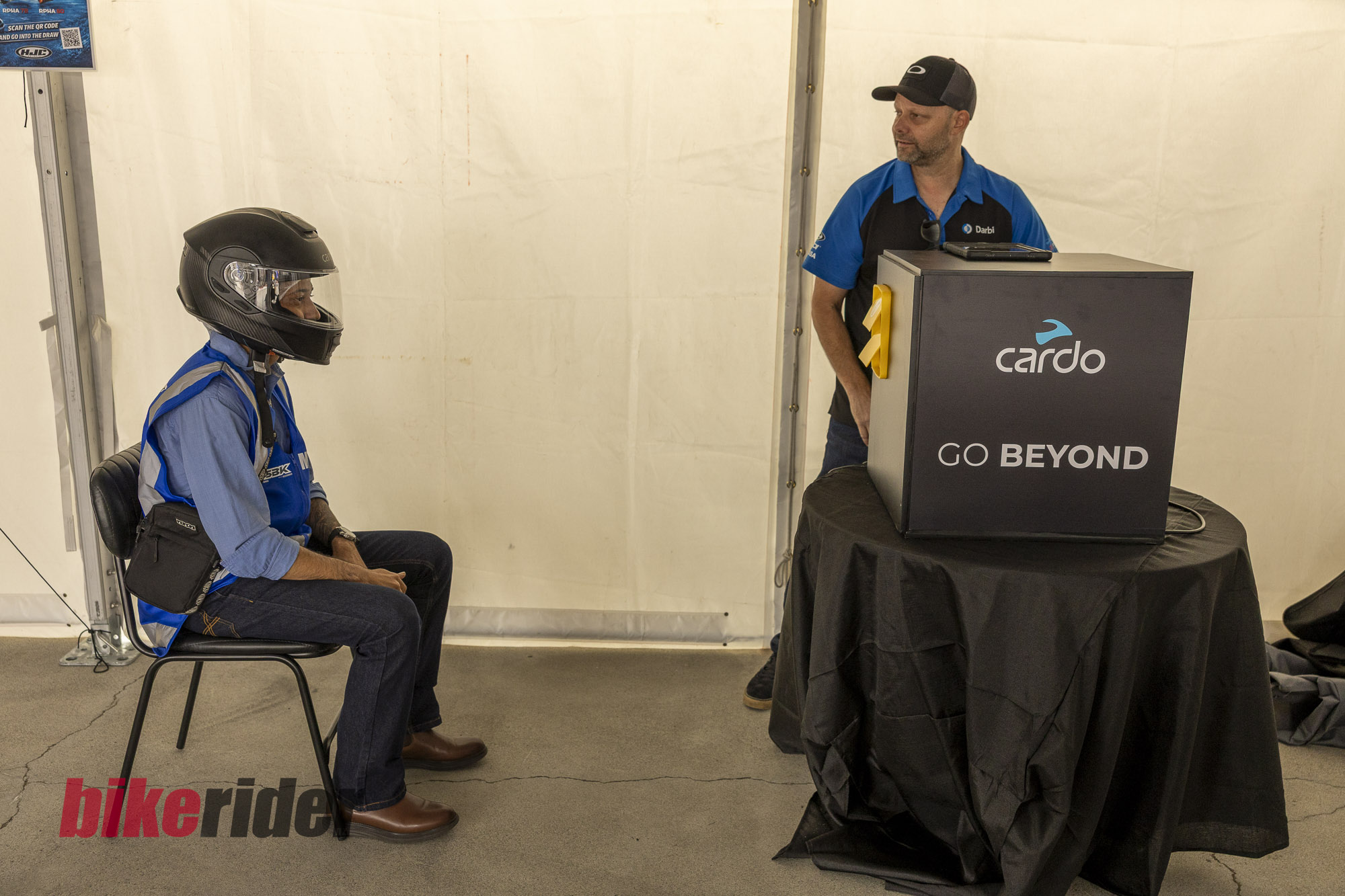 Darbi Accessories is the importer of Cardo intercoms in New Zealand, and it was their stand that had the demonstration we were curious to try. Somehow, they had managed to secure a couple of pre-production units of the new Cardo helmet, which, among other features, offers active noise cancellation designed to significantly reduce wind noise.