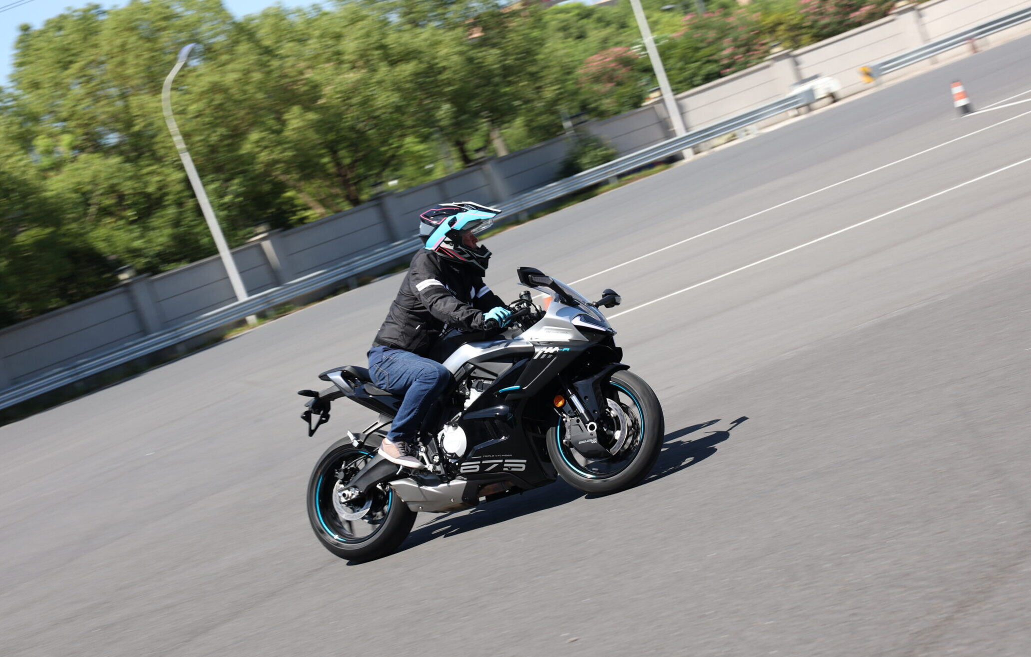But for our visit, CFMOTO had arranged for a demo of some of the new models, ranging from small electric bikes to a couple of their new road bikes and a swathe of side x side off-road machines. With my eyes firmly set on the road bikes, I first managed a few laps on the funky new 500SR before turning my attention to the 675SR-R three-cylinder sports bike.