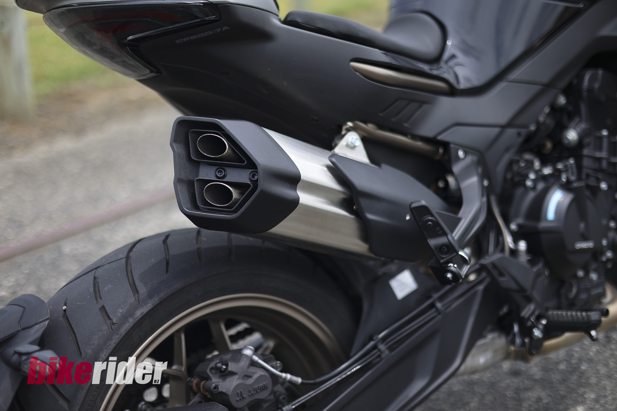 Taken from the KTM 790 Duke, CFMoto changed the mapping and reworked a few internals to give the 800NK a more road-friendly, flexible nature. But with 100hp on tap it can still get up and go when required.