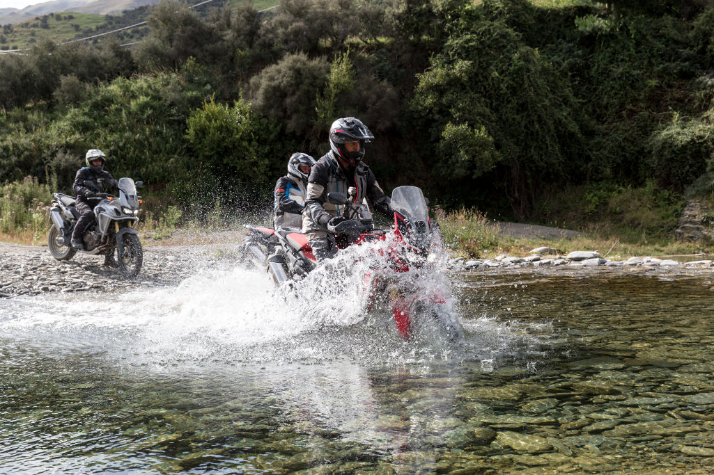 Typically, you want to aim at crossing between 10 to 15km/h in first or second gear, and ideally, you will not change gear mid-stream. Keep the revs in the meat of your powerband and be prepared to slip the clutch a bit to maintain momentum, but without spinning the rear wheel. If you’re crossing a river and not a big muddy puddle, enter the water as upstream as possible. This will allow you to be pushed by the current a little but remain on track.