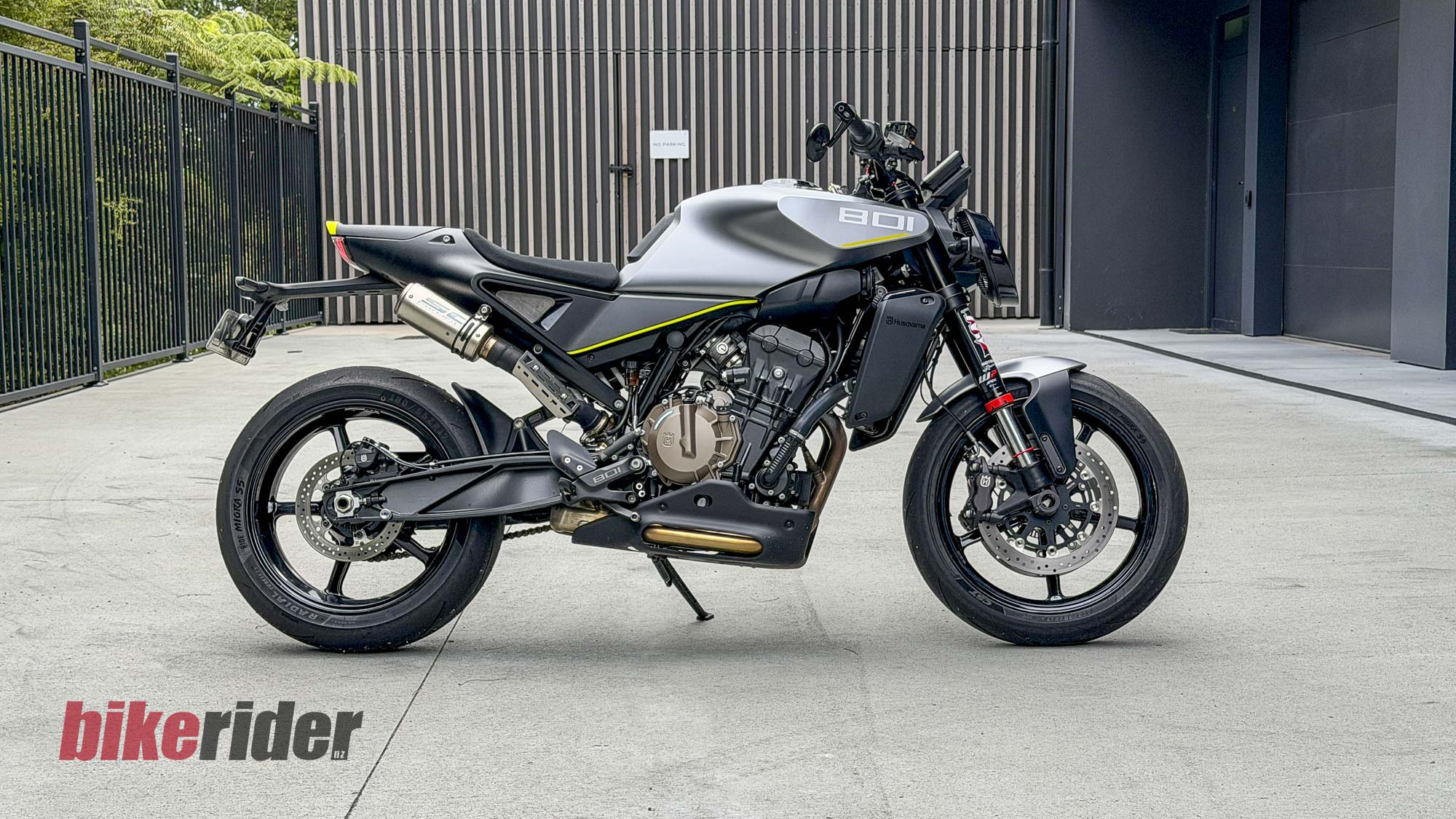 The bike I got to test is Nick Kampenhout’s personal ride, one-half of the ‘NV’ in NV Motorcycles in Morrinsville. The well-respected team features Triumph, Moto Guzzi and Husqvarna brands in their stylish shop, situated a short ride from Hamilton, with a mix of road and off-road models on the shop floor to cater for a mix of customers. And while it is Nick who is the Husqvarna fan – he campaigns a Vitpilen in the Pro Twins class with impressive results – it was actually Nick’s wife, Vicky, who suggested I borrow the angular machine and take it for a spin after dropping back a far more reserved Triumph Trident 800 we’d borrowed for our ‘World First’ test.