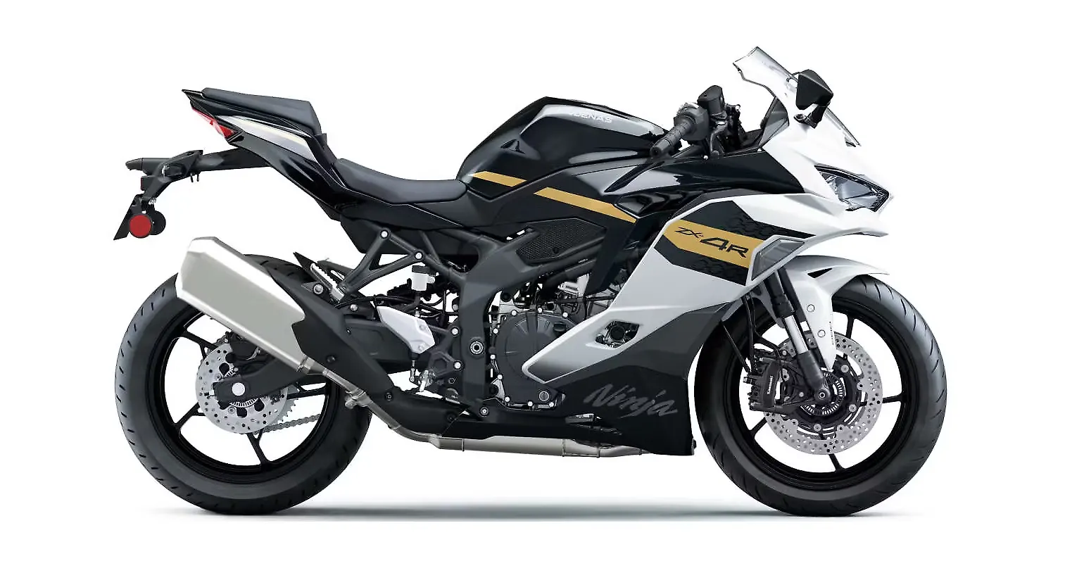 For 2026, the Ninja ZX-4R will be offered in two paint schemes. The more striking option is Blizzard White/Spark Black, which features a dual-tone black and white finish across the bodywork, highlighted by a gold stripe that runs from the fairing through to the fuel tank. The second option, Metallic Moondusty Gray paired with Metallic Spark Black, offers a more subdued and stealthier appearance.