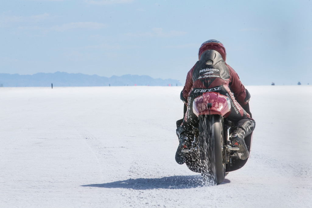 Lee says riding on salt is a completely different challenge to almost anything else you can do on two wheels. While the speeds achieved in land speed racing competition sound like the kinds of speeds you could do at a racetrack back here (and often are), the big challenge is battling the elements and the conditions in order to go fast.