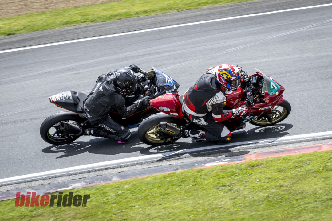 The day also included the always-anticipated Carl Cox Motorsport Cup 1-Hour, sparked to life with a traditional Le Mans start. In the seventh running of the endurance event, 23 bikes lined up — a mix of Ninja 400s and Hyosung 250s, with several strong dual-rider combinations entering the fray. In the Ninja class, Joe Stroud and brother Jesse claimed victory by nine seconds over Lucas Hyslop and Tyler King, after 45 hard-fought laps. The Hyosung race produced the closest finish of the entire season, with Alyssa Boyd and Cameron Leslie beating points leader Scott Findlay by a scarcely believable 0.005 seconds.