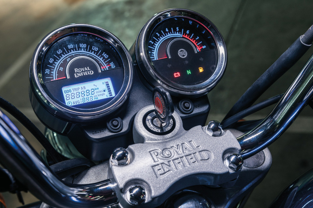 With a carburettor pumping gas into the 350cc engine – which the bike shares with the 350 Classic models (the international 500cc version does get the same EFI engine as the 500cc Classics) – and a kick start hanging off the side, it certainly hits the mark for the character that only an old-school bike and a simple engine can provide.