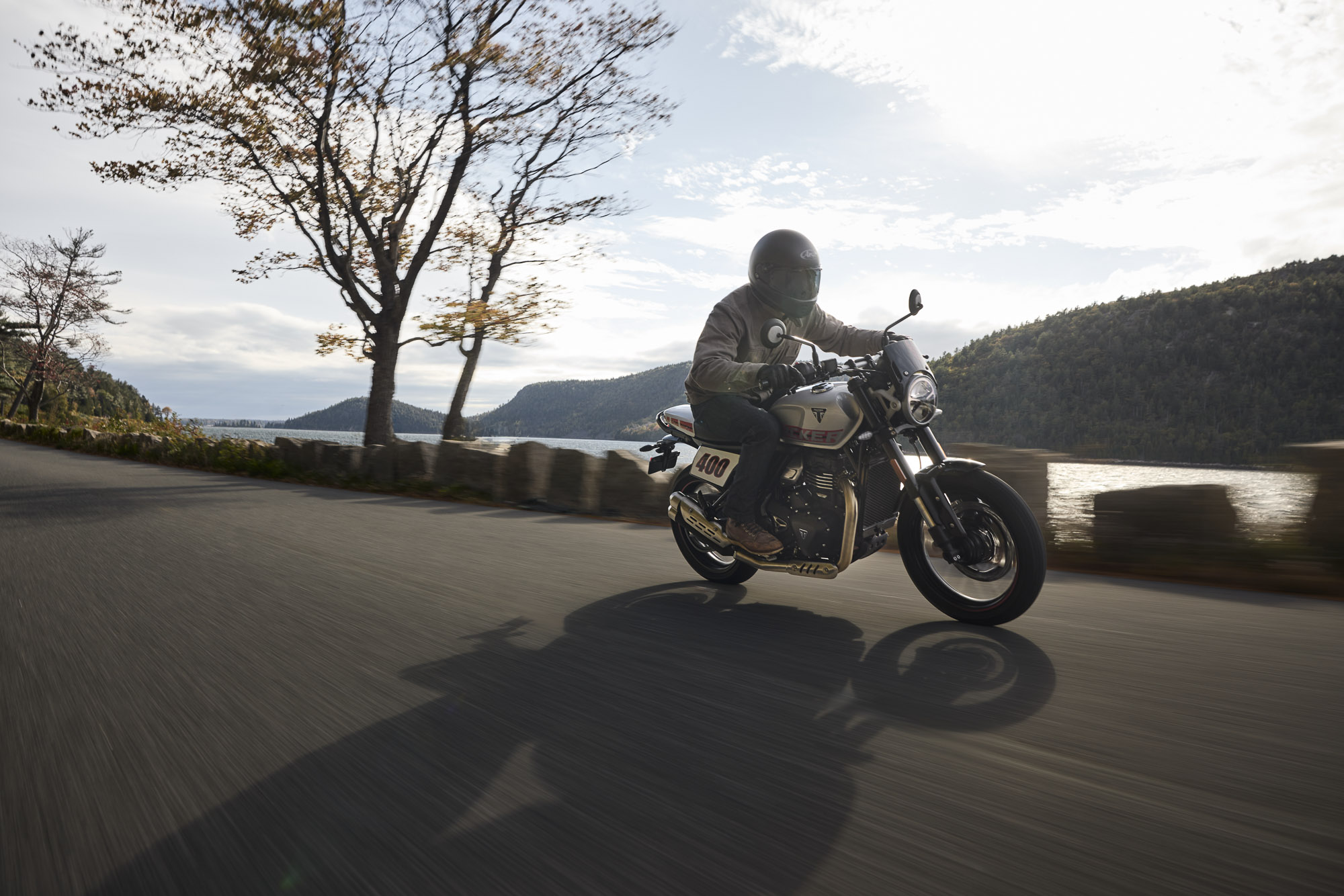 - Two new styles: Triumph adds flat track-inspired Tracker 400 and café racer-styled Thruxton 400 to its expanding 400cc range.