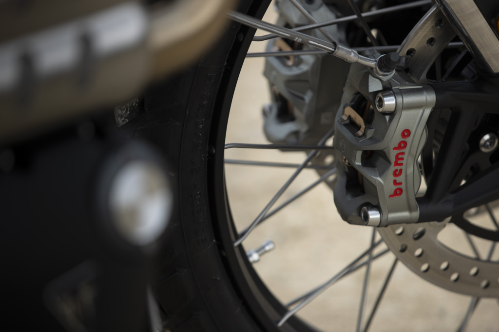 Stopping power matches the intent. Brembo Stylema M4.30 radial calipers clamp onto twin 320mm front discs, backed by a Nissin rear setup. Add Triumph’s Optimised Cornering ABS and Traction Control, and the XE’s braking and stability inspire total confidence — with full-off modes available for advanced dirt riding.